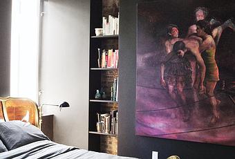 Don't shy away from dramatic touches. In this renovated Brooklyn tenement, black walls, a large artwork, and a Louis XV–style bedframe found on eBay make the bedroom a surprisingly cozy retreat.