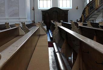 The use of red and white on the walls of the church creates a beautiful cinematic pop. The red-carpet floor and the high ceiling that rests on the tall pillars is a beautiful sight. The chatter is long and breathtaking, yet there is a calm feeling. Gold artwork and colorful windows on the walls are one of the few charismatic design elements of the church.