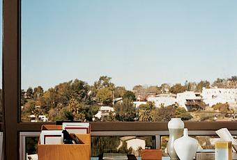 In a corner of Los Angeles mayor Eric Garcetti's sustainable midcentury house, a small desk is situated to take full advantage of the inspiring view. Photo by Misha Gravenor.