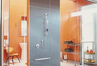 One way to ensure no clutter? Make the bathroom highly visible from the adjacent room, like this glass-enclosed bachelor pad bathroom in Brisbane, inspired by Kubrick’s 2001: A Space Odyssey. Photo by Richard Powers.