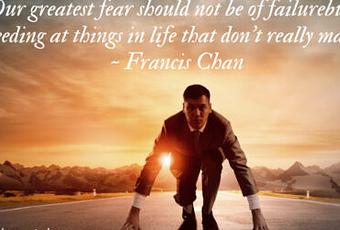- “Our greatest fear should not be of failurebut of succeeding at things in life that don’t really matter.” ~ Francis Chan