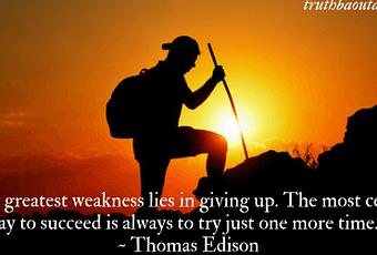 - “Our greatest weakness lies in giving up. The most certain way to succeed is always to try just one more time.” ~ Thomas Edison