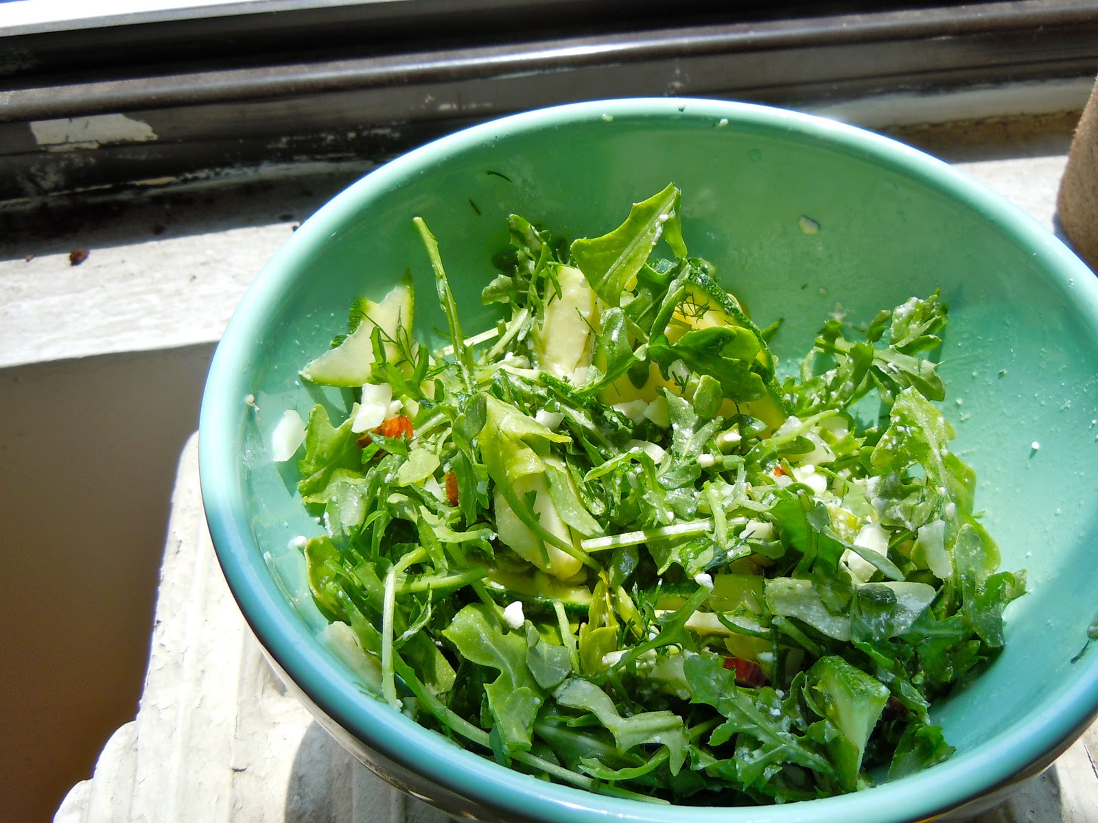France also inspired my love of fresh, bitter greens. A few weekends ago, Katie brought a fennel salad to Leslie's fabulous bloggie brunch. I absolutely loved it and vowed to make a similar one as soon as I got a chance to run to farmer's market. The other day I had that chance. With Heidi Swanson's Shaved Fennel Salad to lead me, I created my new favorite summer salad.