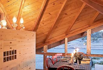 Katja and Adam Thom’s cabin, on an exposed postglacial archipelago in Canada’s windswept Georgian Bay, is more than eight miles from the nearest road. The building, quite literally off-the-grid and far from inland neighbors on a long and slender granite outcrop, is only accessible by boat. The house is powered only by solar panels; it uses a graywater system, attached to the home’s only sink; and there is a composting toilet. Almost all of the wood they used was reclaimed from old Ontario barns, meaning many of the joists and floorboards are several hundred years old.