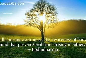 - “Buddha means awareness, the awareness of body and mind that prevents evil from arising in either.” ~ Bodhidharma