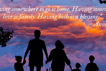 - “Having somewhere to go is home. Having someone to love is family. Having both is a blessing.” ~ Anonymous