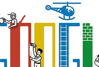 The Doodle features the Google logo in the shape of a building with several workers on their job.