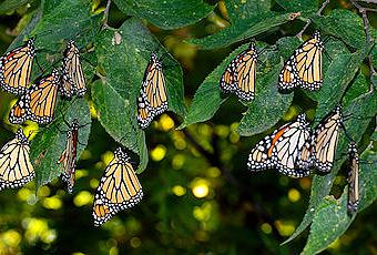 image creditThey look like delicate leaves or flower petals, decorating a tree in dramatic shades of orange and black. But in fact these are Monarch butterflies, one of the best known and most interesting of North America's butterfly species. The Monarch is famous for its southward migration and northward return in summer from Canada to Mexico and Baja California which spans the life of three to four generations of the butterfly.