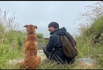 TOP:As we reached the top, we settled down below a tree and began to relax. The fog was really howling by now. The sun was trying to put up a good fight but it was of no use. We had some biscuits in our bag. We fed the dog, and after having biscuits, he sat down and began napping. Haha, such peaceful creatures. We also had some water and relaxed for a while. But the winds blowing along with the fog were actually spooky. After resting for about 20-30mins we decided to head back the spot we discussed earlier.TIME: 09:00