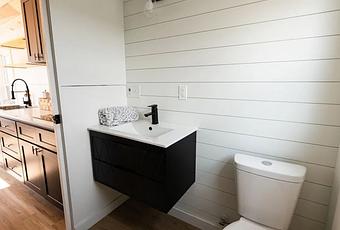 Akin to traditional tiny house designs, a loft lies above the bathroom. Though it is capacious enough to sleep two people, it doesn’t feature any windows so it may not be ideal to sleep. However, the buyers can use the space as a storage room. Priced at $70,500, the 28′ Model Tiny is up for grabs at the Tiny House Listings website.