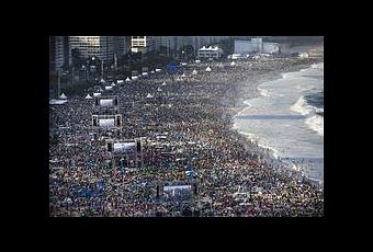The vigil drew a reported 3 million flag-waving, rosary-toting faithful, who overflowed Copacabana beach's 4 kilometers (2.5 miles) of white sand on the final evening of World Youth Day. The attendance figure, given by local media citing the mayor's office, is higher than the 1 million at the last World Youth Day vigil in Madrid in 2011, and far more than the 650,000 at Toronto's 2002 vigil.