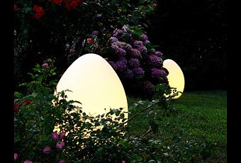 The Uovo outdoor lamp from Fontana Arte adds a surreal element to a backyard. $1,018