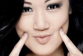 With a powder blush a shade darker than your skin draw a line along your cheekbone, from the ear to the line of the mouth. Then just apply you favorite shade of blush along the same line. Just above the blush apply the highlighter. This technique will give the impression that the darker area is a shadow and the highlighter makes the cheeks pop out making your face look slim.