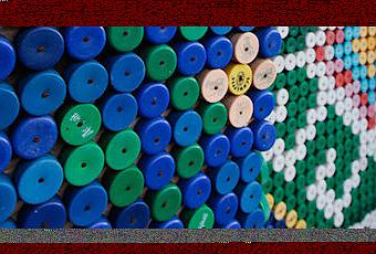 In the Russian village of Kamarchaga, Russian pensioner Olga Kostina has used 30,000 plastic bottle caps to adorn her home with colorful patterns and images - making it somewhat of a local landmark.