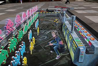 If you are a lover of retro games, and when we say retro, we mean the really old classics such like Pac-Man, Tetris and Space Invaders, then you will love these street art images, where artist Leon Keer has created 3D Space Invaders out of nothing but chalk! At a whopping 150 square meters, this Space Invaders tribute took a whole six days to make!