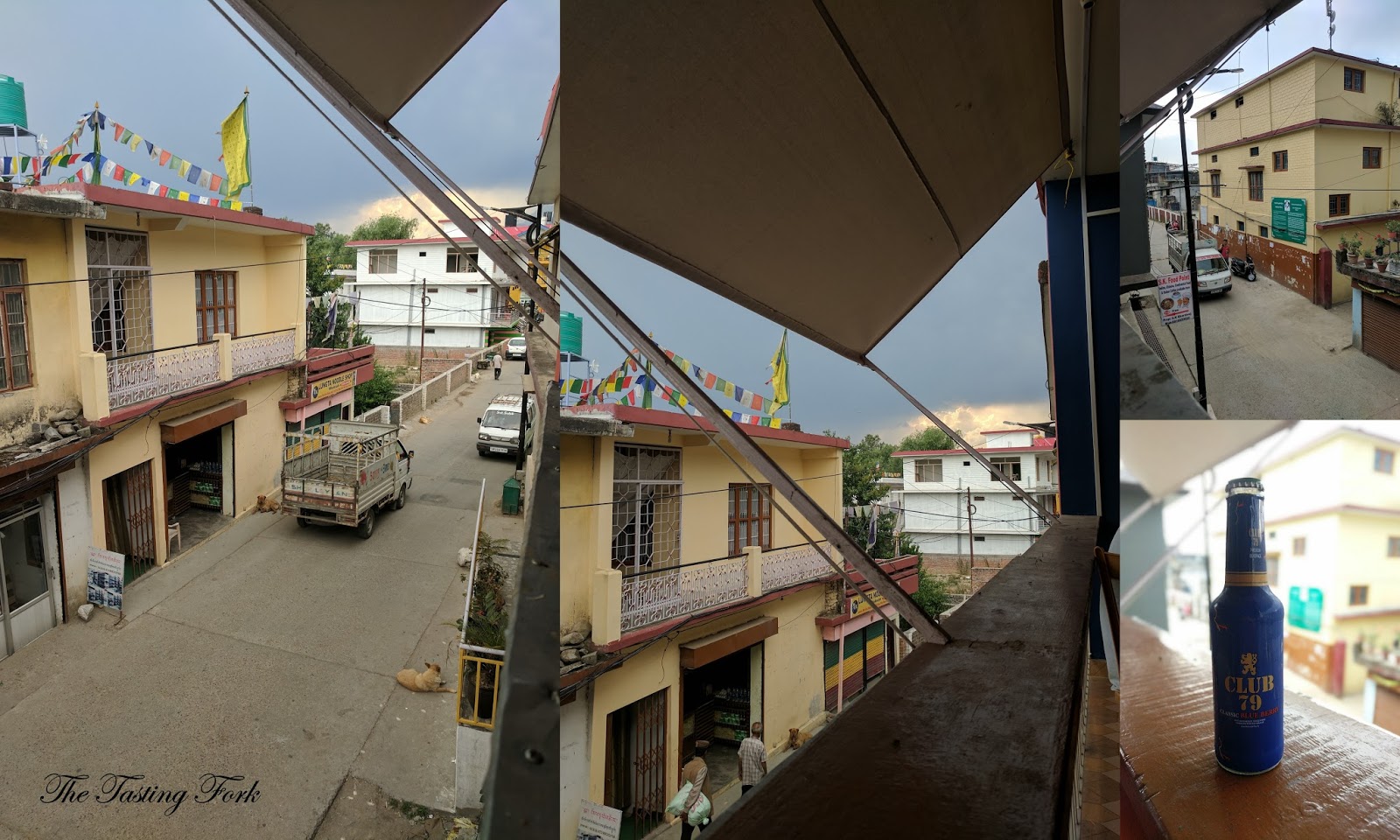 This is one of the latest entrants of restaurants in Bir. It’s a café situated just 80 steps down the road from the Chougan crossroad. A very small quaint café that does a relatively more polished menu, hence the foreigners that you’ll see here often. They’re famous for their wood-fire oven pizzas that they only do after 6pm, but other than that they do a decent range of sandwiches, teas, mocktails, pasta and the likes. Don’t pick the readymade stuff like muffins from here. I took one and it had fungus on it. I went in the evening and they were damn apologetic about it, but imagine if I didn’t notice the fungus. Yuck! But the pizza I had in the evening was so so so good! Thin crust, with crunchy veggies and cheese, and a view of the tea plantations. Beautiful!