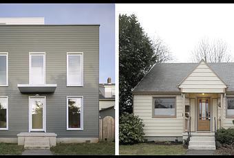 With its slim profile and sleek gray exterior, Lola Oyibo and Eric Boardman’s home in Portland, Oregon, bears little resemblance to the house it used to be. Keeping the footprint, foundation, and framing intact, the architect stripped the structure down to its bones, opening up the interior and adding a second story to give the family 1250 square feet —and a sweet modern space—in which to live. "It's the idea of reuse," architect Ben Waechter says. "We recreated a building that had reached the end of its lifespan, infusing it with another hundred years of living."