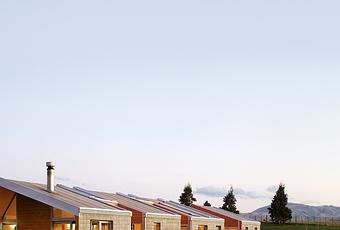 The Longhouse in Martinborough, New Zealand, has a narrow footprint and an angled site placement to provide loads of natural light and cross-ventilation.