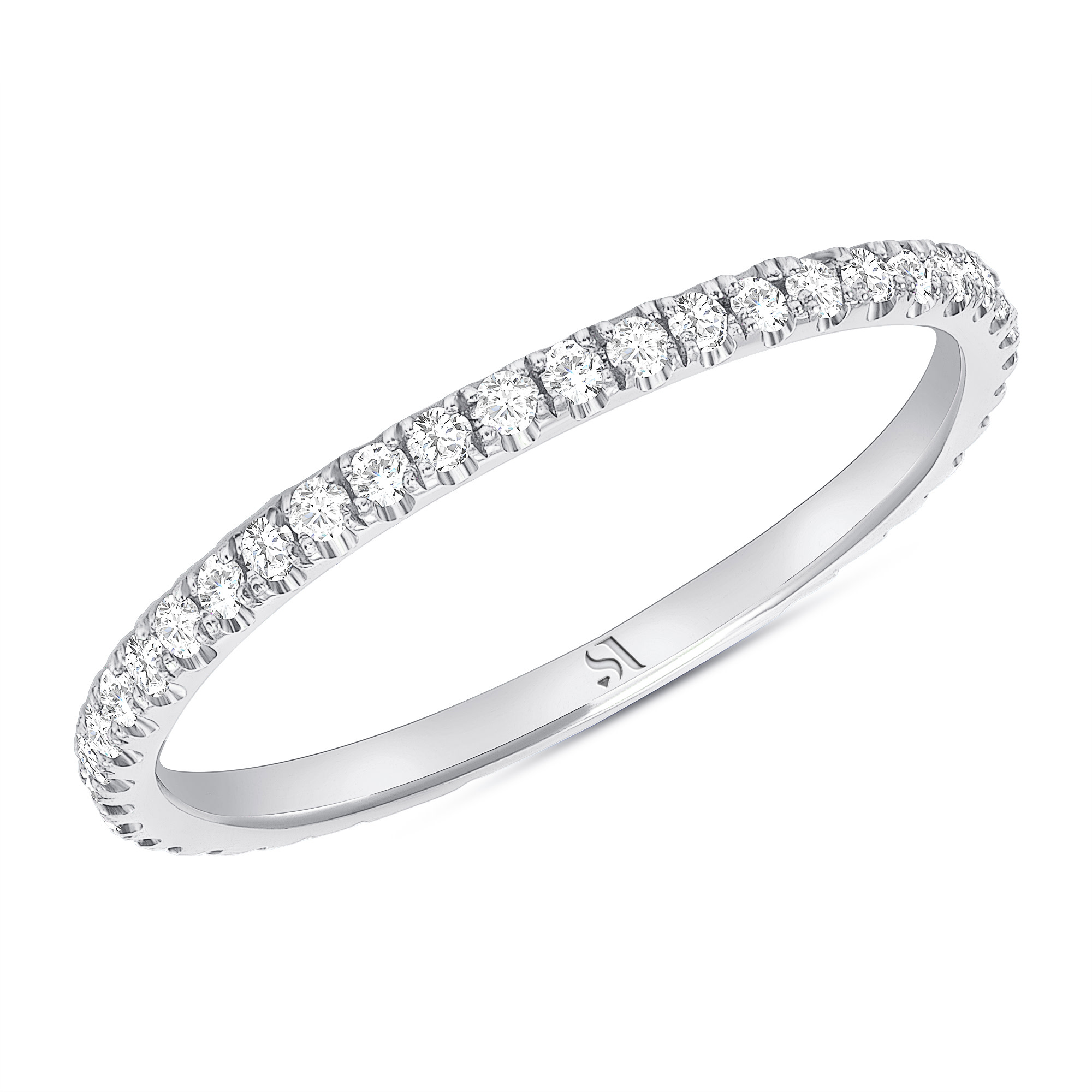 Indulge in the fashion of love and classical combination of the simple loop embedded with round cut luminous and shimmering diamonds. The ring evokes the genuine mark of feminine strength and brilliance. This lucrative beauty comes with timeless beauty and endless companionship. The dainty round diamond eternity bandcomes in rose, yellow, and white gold colors.