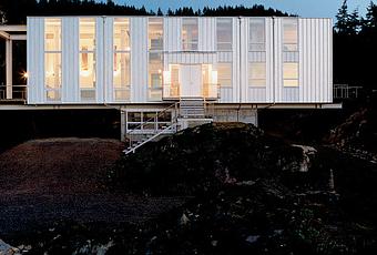 Looking like a jewel box at dusk, Scott Stafne’s Cantilever House rests easy in the middle of the Washington woods. The design is based on a 14-by-86-by-22-foot steel frame resting on a 14-by-31-foot concrete foundation bolted to an existing rock. “That rock is really what allowed this to be such a unique house,” says Anderson. “It’s what allowed us to cantilever the whole structure and take advantage of the site, pointing the house directly at the waterfalls, which are incredible.” Photo by: John Clark