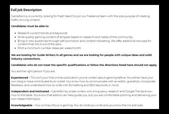 Another set of clients to be wary of are those who offer below average pay rates with a tall list of requirements. There are a couple of reasons to avoid these types of jobs. You will quickly feel underpaid and overused, leading to resentment and job dissatisfaction.