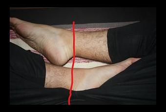 The picture below shows how the heels are aligned on the body's center-line.