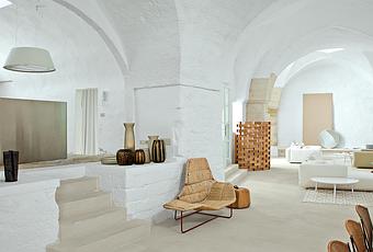 The acclaimed Italian designers Ludovica+Roberto Palomba carved a serene retreat out of a 17th-century oil mill in Salento, Italy, filling it with custom creations and their greatest hits.