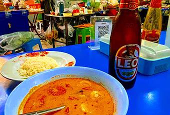 I had heard of 'Tom-Yum-Goong' soup from Dua Lipa, she had spoken about this delicious soup that she would always eat after a show in Thailand. If it was good enough for Dua, then it was good enough for me! I turned my back on that route, heading back into an older street that oozed charm. I found some patience from those streets, I stumbled upon a streetside operation with some serious delicious smells, I fancied a slice! I managed to order a bowl of the mentioned soup with the all important spice level suggested, I did not have time to make the same mistake twice. I headed across the road to get an ice cold bottle of LEO because life always tastes better with a bottle of that Thai beer. That streetside restaurant held the unapologetic vibe that I had been longing for, it was almost evening and that street boasted no other tourists. Minding my business, I didn't want to share this off the radar setting, I was serious! Prawns? You know that I was going to get a serving of prawns, Thailand just got me! The stars had aligned, I wasn't mad!