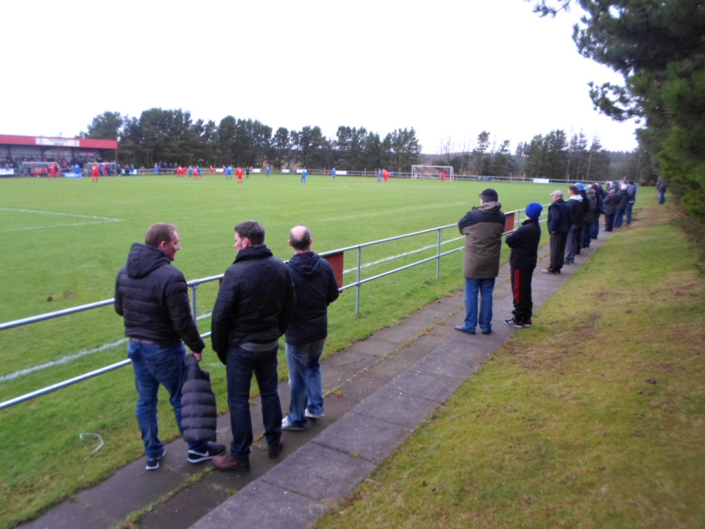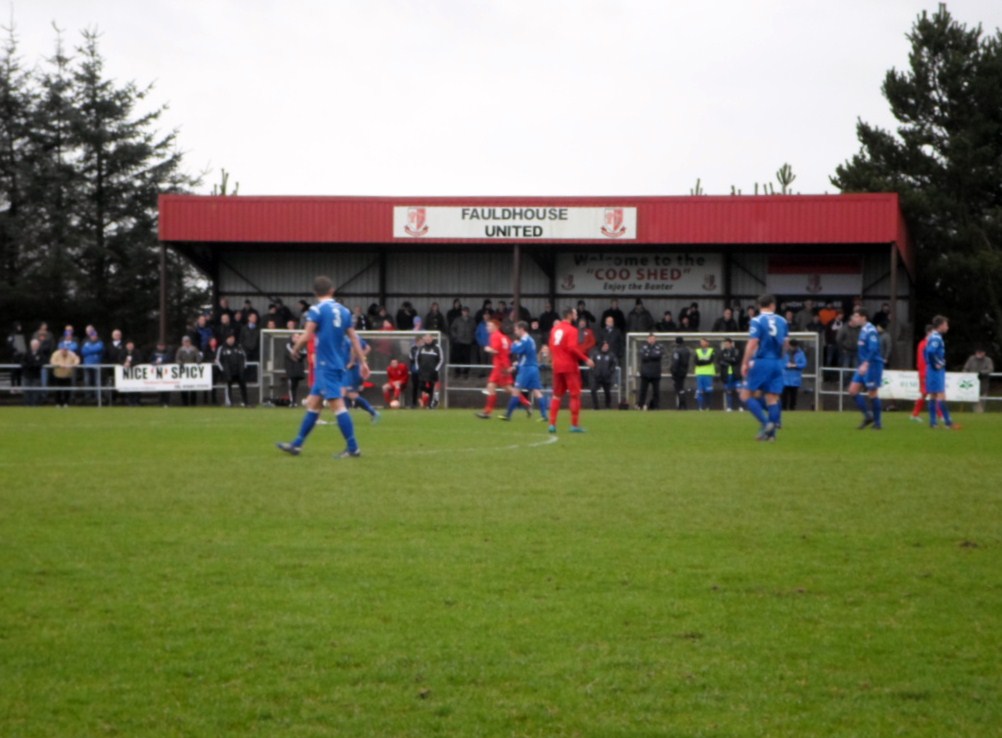 We arrived just outside the ground at 1.20, and I had just got out of the car when I was told the match was off, coincidentally it was Robert who I had contacted on twitter that broke the news. He knew who I was and how far I had travelled, so he felt bad having to inform me that although the local referee passed the pitch earlier, when the match ref arrived he wasn’t happy with a soft patch in and around the corner flag of around 5 square metres, which he deemed unsafe for the players.I remembered the previous evening when I was looking at the East Region fixtures, I recollected that Fauldhouse were at home and I knew it was somewhere in the vicinity of Whitburn. I asked Robert where it was and he told me it was about 7 minutes away and gave me precise directions to their ground. So we raced up the hill towards Longridge, then a sharp left along to Fauldhouse, so we arrived a good ten minutes before kick off. We didn’t have any idea who they were playing, so we entered the ground and saw there was already a decent crowd gathering as the Hoose were hosting Bo’ness United.