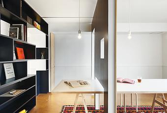 When Tokyo architect Yuko Shibata and her husband looked to remodel an apartment they had just purchased, she knew that she wanted to include a home office from which she could base her firm. The only problem was that her husband wanted it to feel like a home too. So Shibata designed a sliding wall that fit over the dining table, allowing the room to function as both a meeting space and library.