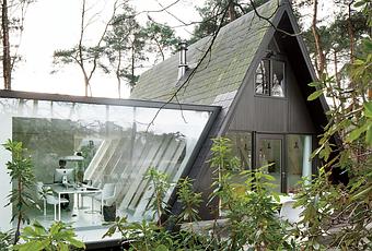 A glass addition granted this tiny A-Frame home in the Belgian forest a little extra square footage, and made the space feel much more expansive inside.