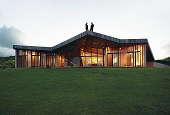 “We sought to create a house that would not damage the environment and not be too visible,” says architect Tina Gregorič of the cliff top house she and partner Aljoša Dekleva built for a couple in Maui. A single zigzagging roof stretches over 5,380 square feet, doubling the area of the interior spaces and serving as an ideal spot for sunset cocktails and whale-watching.
