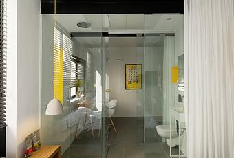 Tiny Tel Aviv Apartment glass walls separating spaces