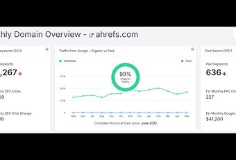 Ahrefs also shows the monetary traffic value, 5 top-performing pages and the top 5 keywords driving the most traffic on the overview.