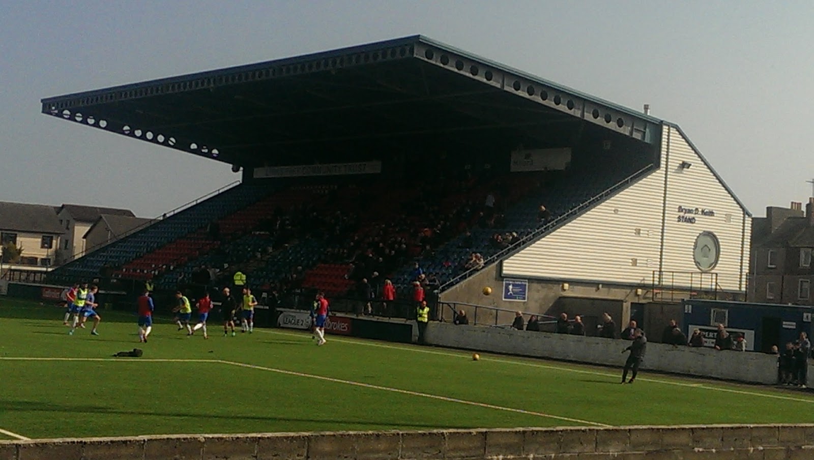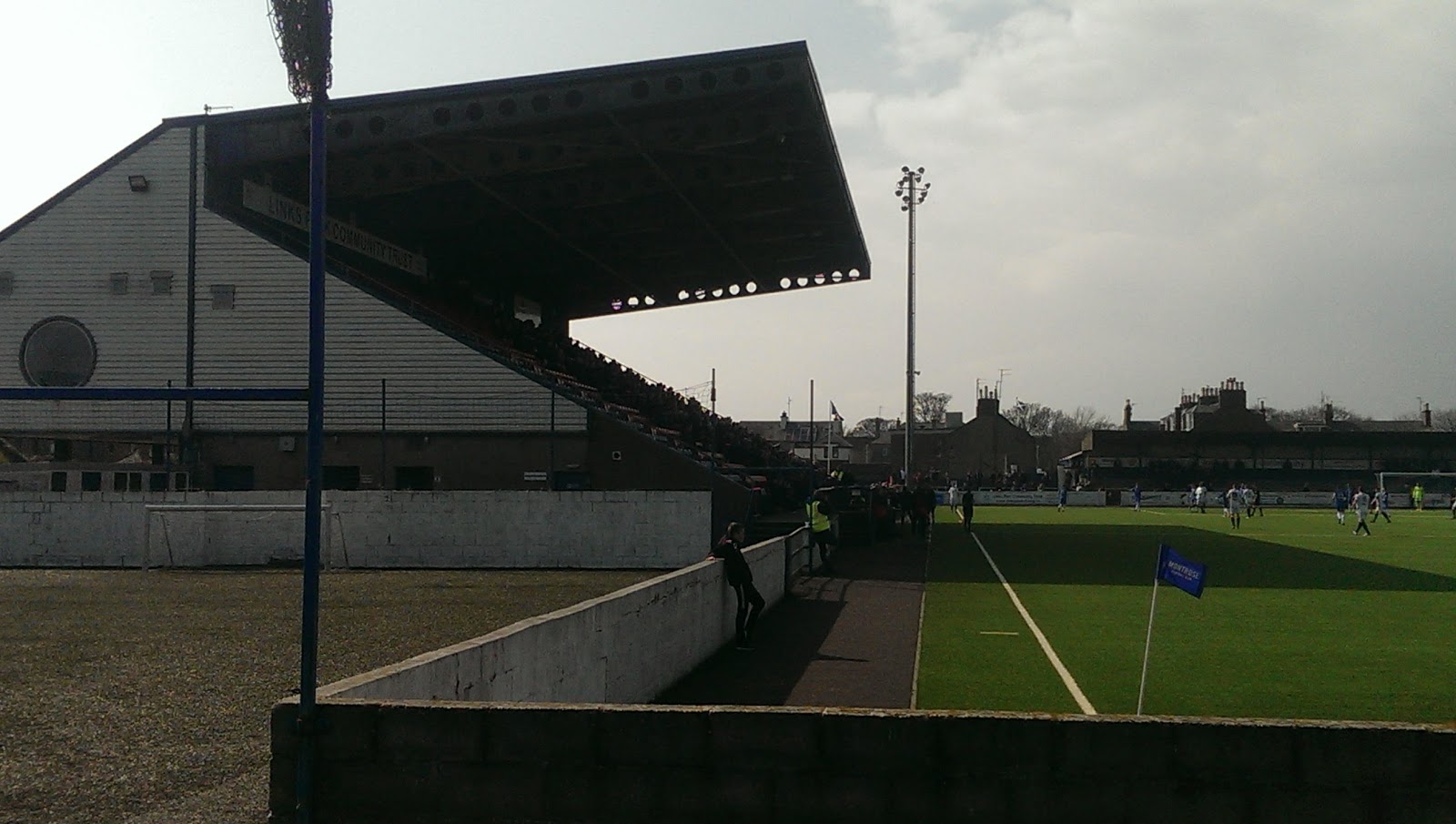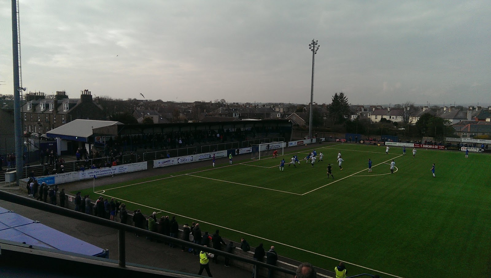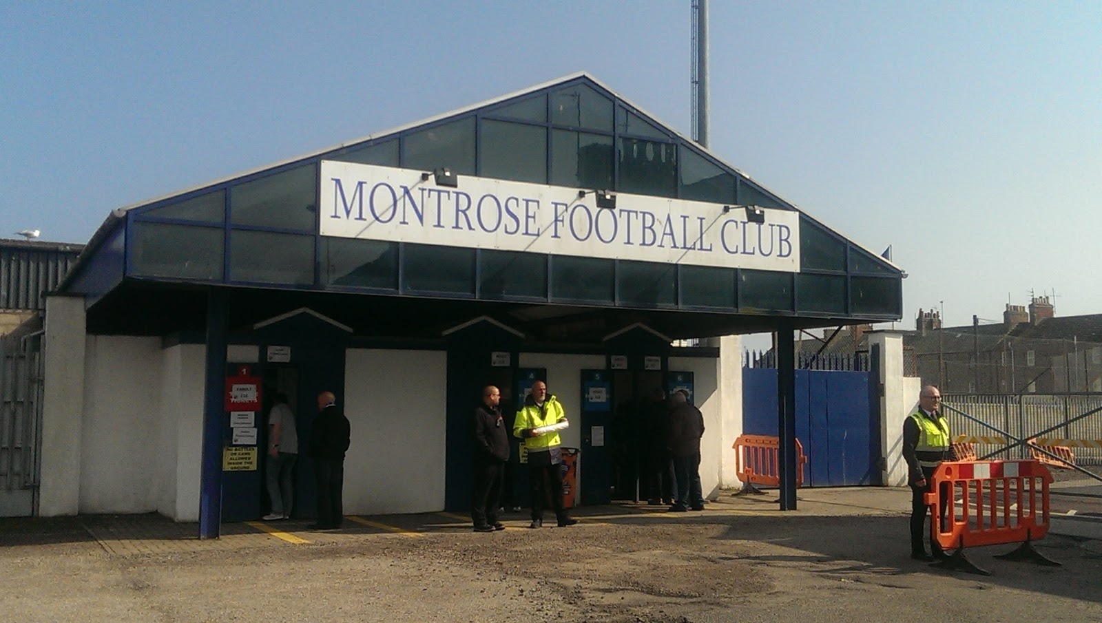 Links Park StadiumWellington StreetMontroseAngus DD10 8QDCapacity 4,963Record attendance; 8,983 v Dundee, Scottish Cup quarter-final, March 1973.Current Scottish League grounds visited 36/42Links Park was opened in 1887, with the club financing the new ground by renting the pitch out for circuses and livestock grazing.The first stand was built in 1920, with cover added over the Wellington Street end of the ground in the 1960s and floodlights installed in 1971. Following the arrival of Bryan Keith to the club, the ground was vastly improved in the 1990s with the wooden Main Stand replaced by a cantilevered stand in his name. The stand has 1,258 red and blue flip seats, which is quite steep with no supporting pillars or windshields. The rest of the ground has terracing, with four skinny corner floodlights and a 3G pitch, which was laid in 2006 then replaced in 2015.