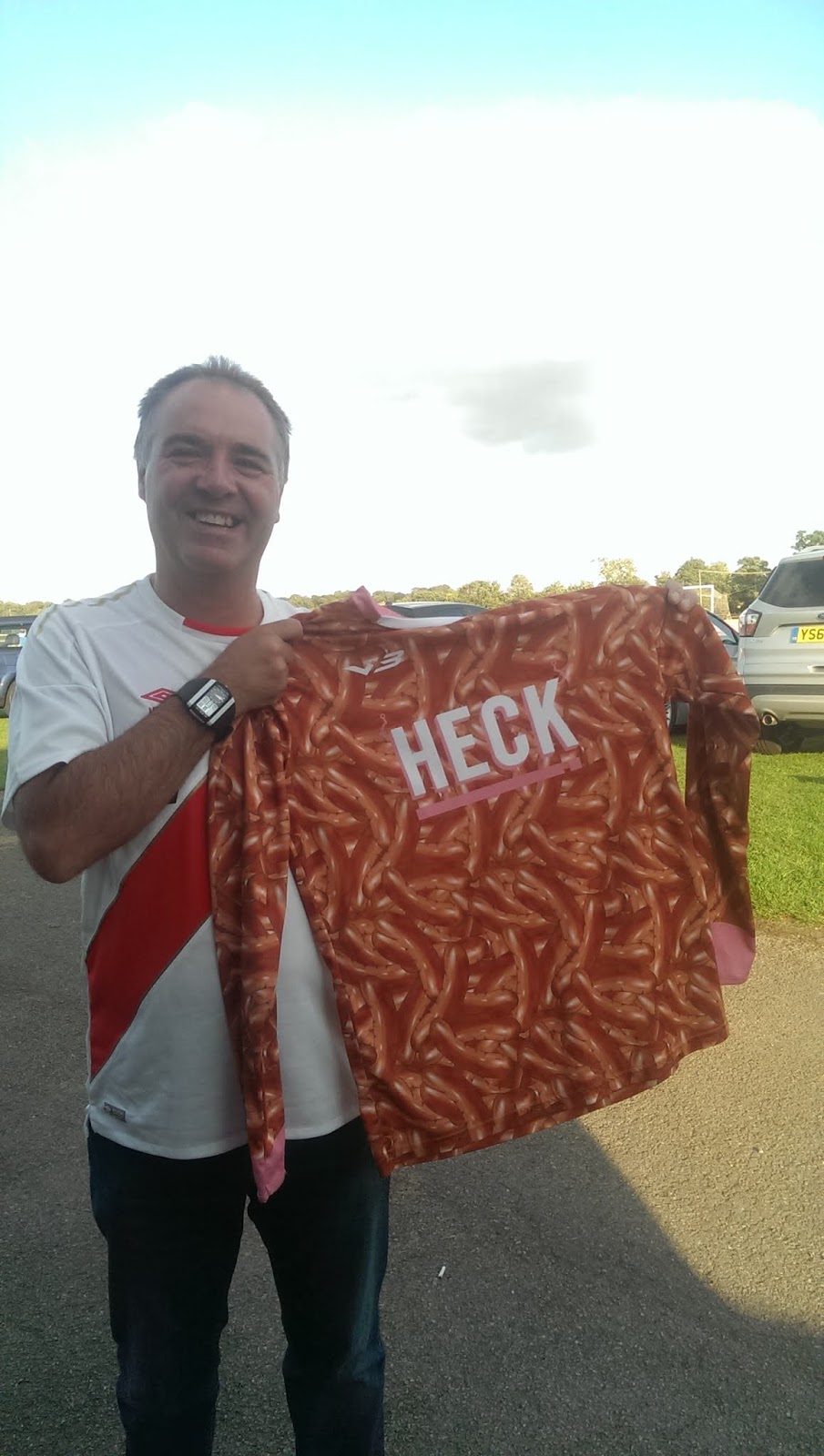 Bedale is a leisurely one hour drive down the A1. I picked up Lee & Katie on route and arrived at the ground to be greeted by Facebook legend John McClure, who had traveled up from York for the game with his better half Hilary. We were a bit disappointed to find out that the home team were wearing their traditional yellow and green colours instead of the hot dog kit, but I did get a picture of last season’s sausage job, the shirt they adorned last season when they were North Riding Division One champions. Bedale(7th) v Yarm & Eaglescliffe(4th)North Riding Premier League Matchday ⅚6.30pm koThe away team claimed the points with a goal in each half. After a tight opening period Yarm made the breakthrough just before the break when a right wing corner kick was met by the head of Michael Mackin. Bedale played well in the second half and worked hard in search of an equaliser, but the more experienced away side wrapped up the points late on, when a sweet right wing cross was headed home by Micheal’s brother Sean.