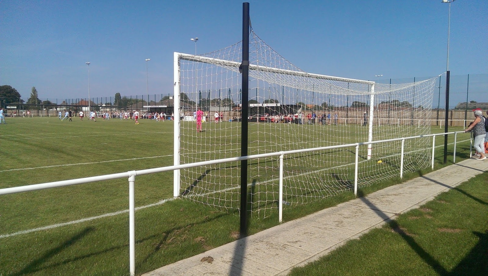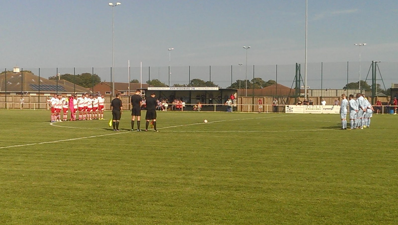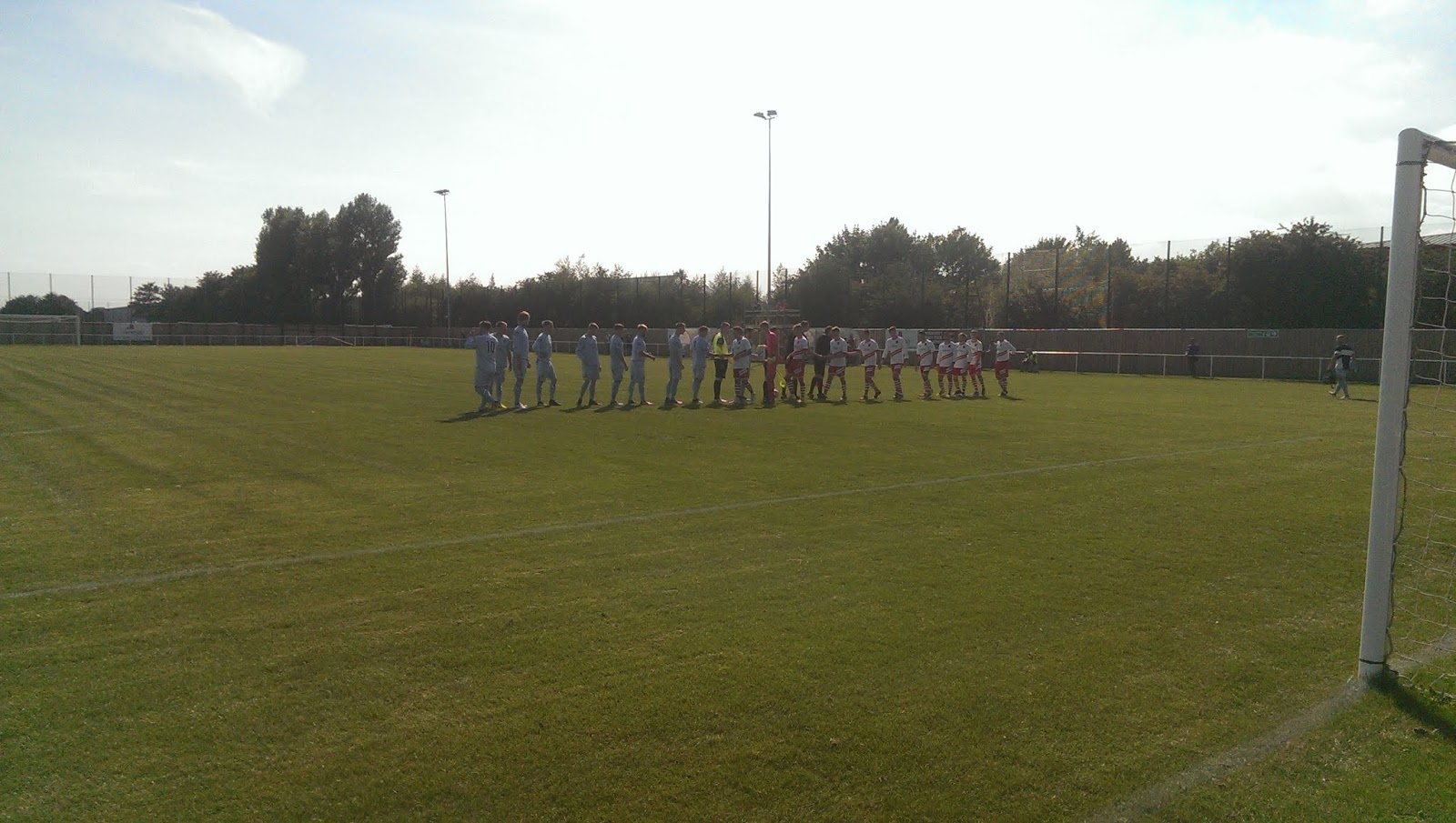 Skegness Town v Clay Cross TownNCEL Div.1(18th) v CML North(1st)FA Vase 1st qualifying round 3pm ko Every time I’ve visited Skegness there’s always been glorious weather, and a decent crowd enjoyed a thrilling cup tie in the baking sun. Clay Cross put a dark cloud over proceedings, taking the lead on 34 minutes when a ball in from the right picked out Calum Lytham to stroke the ball home. The Lillywhites responded quickly with a superb 20 yard effort from Jordan Smith, which flashed past the keeper and into the far corner of the net, to leave the match finely poised at the break. I was expecting a tight encounter in the second half, but the home team took full command of the tie. Smith fired in his second on 55 minutes, before Will Britton cut in from the left, went past a couple of defenders and gave the goalie no chance with an accurate drive minutes later.Skeggy rattled the crossbar a few times, but the tie was settled when the ball was laid on for Britton to bang in his second and book their place in the 2nd qualifying round of the Vase.Matchday Stats and Spondoolicks STAFC 4 (Smith 42,55 Britton 59,72) CCTFC 1 (Lytham 34)Att.158Admission £5Programme: sold outPin badge £3