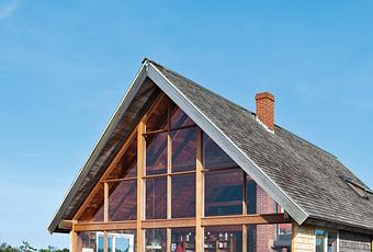 Mid-century designer Jens Risom’s a-framed prefab summer retreat, located on the northern portion of Block Island, Rhode Island features an entire wall of windows that offers stunning views of the island.