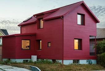 Waechter Architecture reimagined a traditional gabled home in southeast Portland without significantly altering the original building. A simple coat of red paint abstracts the century-old structure, creating a residential work of art.