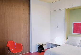 This Boston photographer’s flat is contained to a 1,500-square-foot space. A folding bed and pullout bedside tables make the transition from photography studio to bedroom painless. Photo by Kent Dayton.