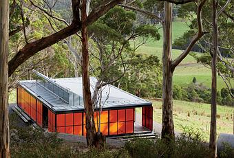 Upon his first visit to Tasmania, an island south of the Australian mainland, resident David Burns was immediately smitten with its varied, pristine landscape. Working with architecture firm Misho+Associates, he built a self-sustaining, 818-square-foot prefab retreat that would allow him to completely unplug from urban life.