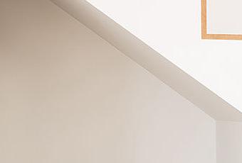 In an affordably built home in Kansas City, an alcove under the staircase provides an easy place to stash storage bins. It also conceals a bookshelf.
