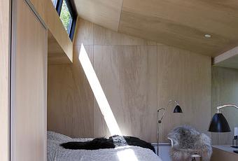 In Præstø, on the Danish island of Zealand, a guesthouse infuses the regional vernacular with Japanese influence. The interior is small, but comfortable. It fits a double bed, coffee table, and chair. The bed is recessed into the wall so as not to waste any space. Natural light floods the interior from a clerestory.