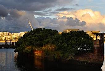 One such ship was the SS Ayrfield, built in 1911 as a steam collier that was later used during WWII as a transport ship. In 1972 it was brought to Homebush Bay to be dismantled, but operations at the ship-breaking yard subsequently ceased and the Ayrfield was left behind. But this century-old transport ship would be transformed by time into a floating forest, a peculiar home for trees and other vegetation that have since sprouted over the last few decades.