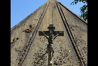 Richard died first, in 1890, and Isabel commissioned the strange structure. Her late husband had told her he would like them to be side by side in a tent after death, hence the design of the sandstone mausoleum. The central panel at the front was originally a stone door; opening it would activate an electric system to shake camel bells in the ceiling, adding to the tent-like atmosphere. At the rear is a window, added because Richard didn't like the dark. It currently serves as the entrance for restorers as the door has been replaced by an immobile panel. The current restoration project hopes to reinstate the door, although they do not yet know how it was constructed - a solid stone door would be impractically heavy.