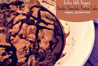 Check out Heather’s original Single Serving Double Chocolate Protein Cake Recipe.
