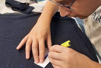 The final touch was for the sky texture: we looked for a dark blue fabric to cover the front of the panel, to mask the LEDs a little so they seemed more natural. After a couple of tests on small samples, we glued it to the whole panel.