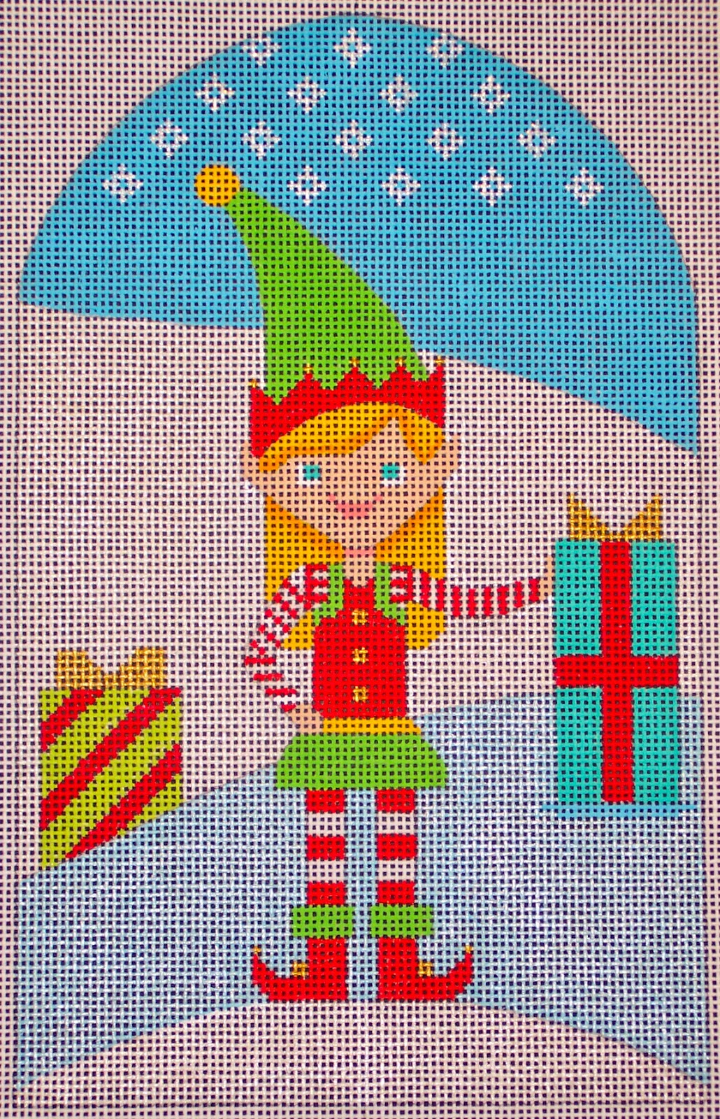 Kringle Belle Mini"Delivering Gifts"5 x 8 on 18ct.
