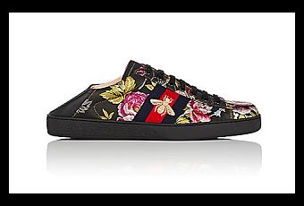 The florals have run amok! At Gucci florals know no bounds especially on the vibrant New Ace Leather Sneaker. The black leather upper is completely embroidered in a colorful motif, features a gold metallic bee embroidered over one of the brand's signature banding and is all anchored onto a smooth black rubber sole. As an added cool feature, the New Ace has a foldable leather back that converts this sneakers to a slide for a highbrow luxe meets casual verve. Available now at Barneys.com.