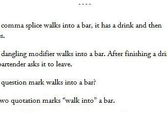 I think my personal favorite is #6: “The bar was walked into by the passive voice.”